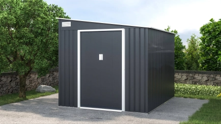 Vrtna kućica za alat i opremu od čvrstog pocinčanog čelika i otporna na korodiranje i stroge vremenske uvjete. Antarcit sive boje za ljepši i estetski vrt , montira se na betonski temelj ili betonske pločice. Pravokutni oblik konstrukcije omogućuje praktično postavljanje čak i na zahtjevnijim lokacijama ili malim vrtovima. Kosi krov učinkovito odvodi vodu, dok ventilacijski otvori osiguravaju cirkulaciju zraka, sprječavajući vlaženje pohranjenog alata. Plaćanja pouzećem ili s karticom, dostava 39€ za cijelu Hrvatsku osim otoke.