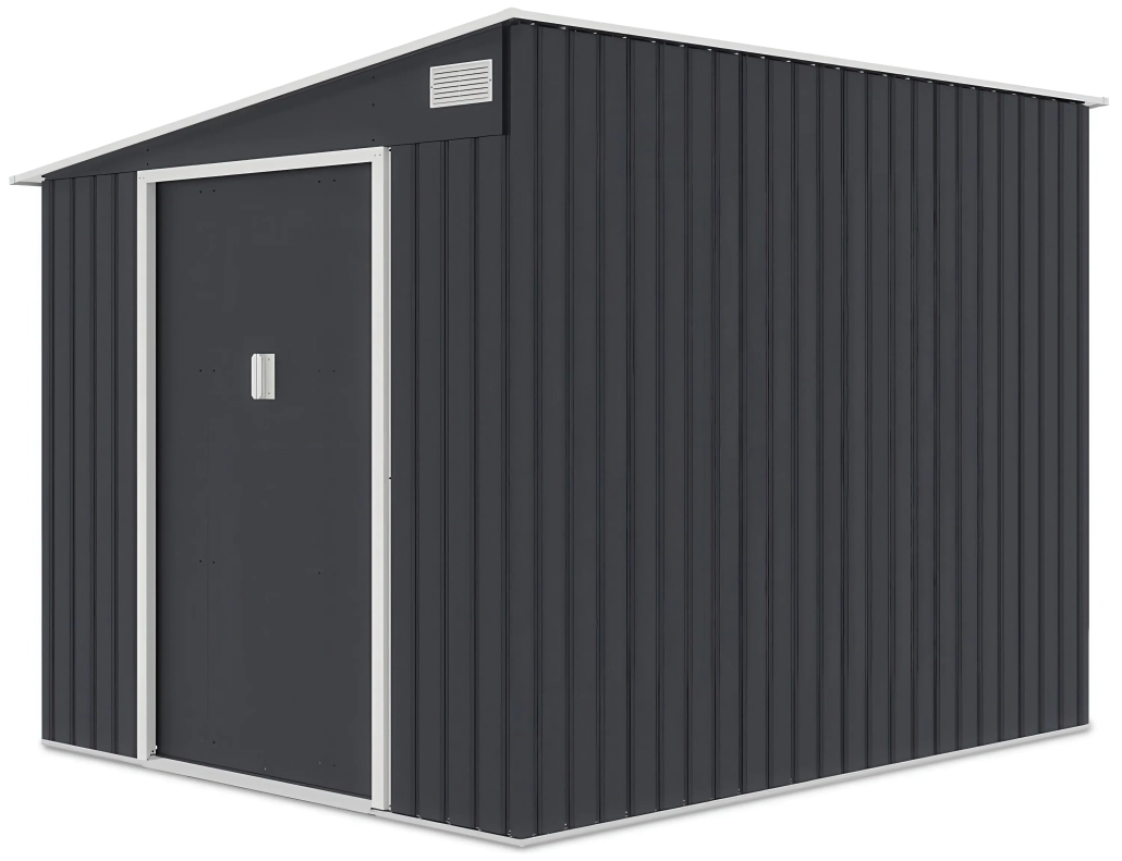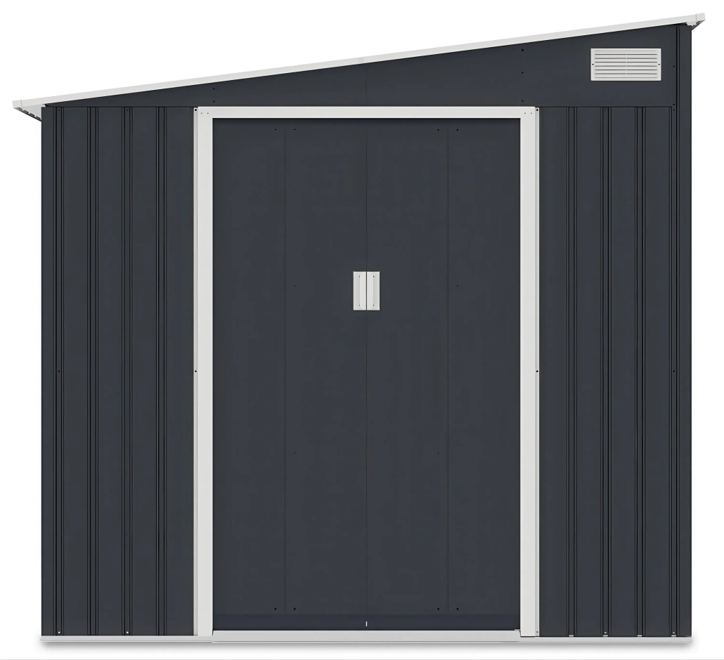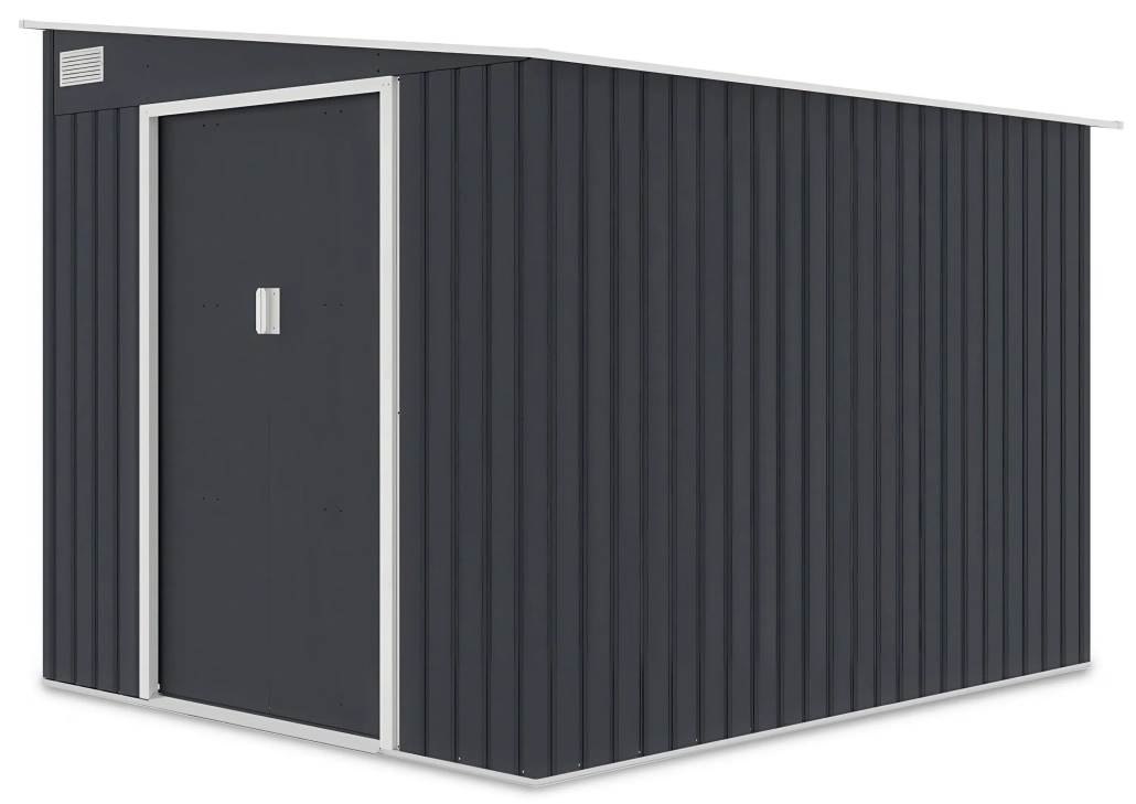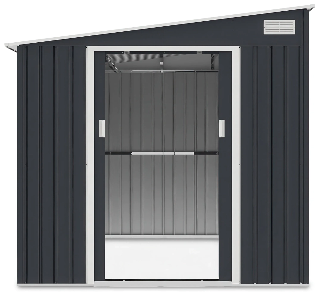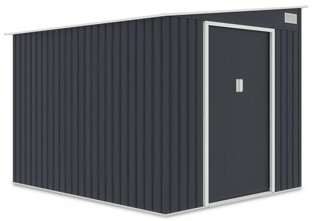 Vrtna kućica za alat i opremu od čvrstog pocinčanog čelika i otporna na korodiranje i stroge vremenske uvjete. Antarcit sive boje za ljepši i estetski vrt , montira se na betonski temelj ili betonske pločice. Pravokutni oblik konstrukcije omogućuje praktično postavljanje čak i na zahtjevnijim lokacijama ili malim vrtovima. Kosi krov učinkovito odvodi vodu, dok ventilacijski otvori osiguravaju cirkulaciju zraka, sprječavajući vlaženje pohranjenog alata. Plaćanja pouzećem ili s karticom, dostava 39€ za cijelu Hrvatsku osim otoke.